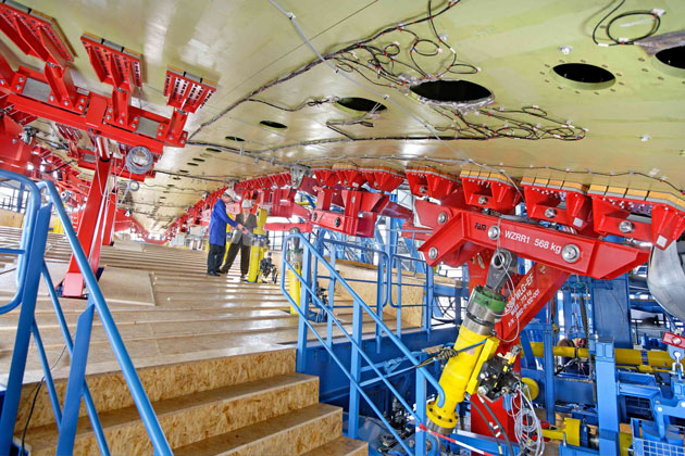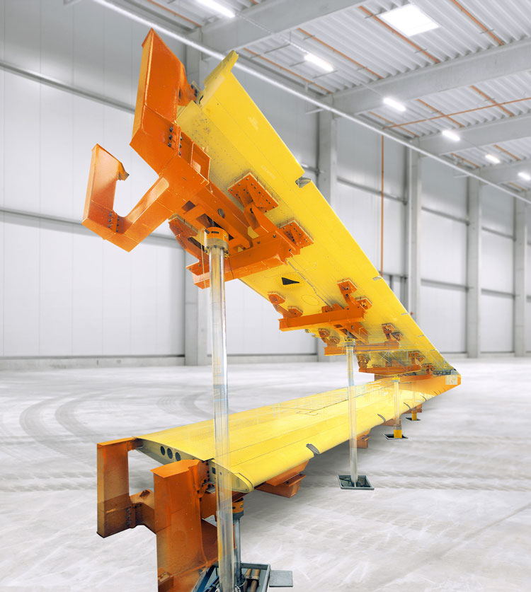 Le esigenze di precisione impongono di evitare forze di disturbo come gli effetti stick-slip dei cilindri. Ad esempio, sulle estremità alari si verificano forze di richiamo molto basse, che però devono essere spostate contemporaneamente fino a 670 mm/s. In questo modo, le ali vengono spostate fino a 2,9 m dalla posizione zero verso l'alto e fino a 1,2 m verso il basso. Tuttavia, si possono facilmente verificare vibrazioni indesiderate delle strutture morbide se i pistoni e gli steli pistone dei cilindri idraulici non sono il più possibile scorrevoli. In questo caso, si accettano tolleranze di solo il 3% del carico nominale del cilindro, che in pratica sono inferiori al 2%. Le vibrazioni indesiderate provocherebbero scostamenti di carico indesiderati e falserebbero i risultati dei test. I cilindri idraulici con guarnizione a fessura anulare flottante brevettata da Hänchen sono quindi utilizzati nei test strutturali sugli aeromobili, poiché hanno sempre lo stesso attrito, indipendentemente dalla pressione. In questi cilindri, una boccola in acciaio si deforma attraverso una fessura ridotta, creando così una fessura di tenuta senza contatto di pochi 1/100 mm. Il presupposto per questa tecnologia è una precisione di produzione nell'ordine di pochi μm, altrimenti la perdita porterebbe a elevate perdite idrauliche. Questa serie di cilindri 320 in versione Servofloat® offre un vantaggio di costo di circa il 30% rispetto ai cilindri con guida dello stelo pistone idrostatica. Grazie al loro bassissimo attrito, i cilindri di prova di Hänchen offrono la possibilità di ottenere un'elevatissima precisione di posizionamento e ripetibilità, sono privi di stick-slip e sono ugualmente adatti a movimenti estremamente lenti e veloci. Anche la stabilità è stata determinante per la scelta dei cilindri idraulici Hänchen. Infine, il test dura 24 ore al giorno, sette giorni alla settimana.
