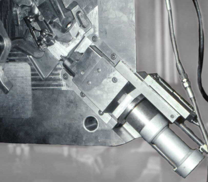 Gli stampi di fusione sono progettati ciascuno per la produzione di 100.000 iniezioni con un tempo ciclo da 30 a 60 secondi. I cilindri idraulici superano questo carico senza sostituzione delle guarnizioni, sottolinea lo specialista di pressofusione: “All'inizio abbiamo avuto buone esperienze anche con prodotti di altri produttori. Tuttavia, i tempi di fermo sono stati drasticamente inferiori, con sollecitazioni termiche e forze trasversali che hanno portato a un'usura eccessiva.” La fonderia utilizza quasi esclusivamente cilindri a catalogo della serie 120 del catalogo elettronico E-Kat (oggi configuratore di prodotti HäKo) di Hänchen, che funzionano con una pressione di esercizio di 150 bar. Sono stati modificati per temperature ambiente fino a un massimo di 200 °C mediante speciali combinazioni di guarnizioni e raccordo per olio di drenaggio e sono adatti per il fluido HFC. A parte questa piccola modifica, si tratta di un cilindro di serie economico. Un cilindro idraulico è una costruzione speciale per motivi di spazio, un altro funziona tramite un intensificatore di pressione con 300 bar. A causa della pressione di colata specifica, che agisce su una superficie dello stampo particolarmente ampia sul cursore, si verificano forze di 56 t. Questa forza è trattenuta esclusivamente dai cilindri Hänchen, nei quali è stata quindi integrata una valvola di ritegno che può essere sbloccata idraulicamente.