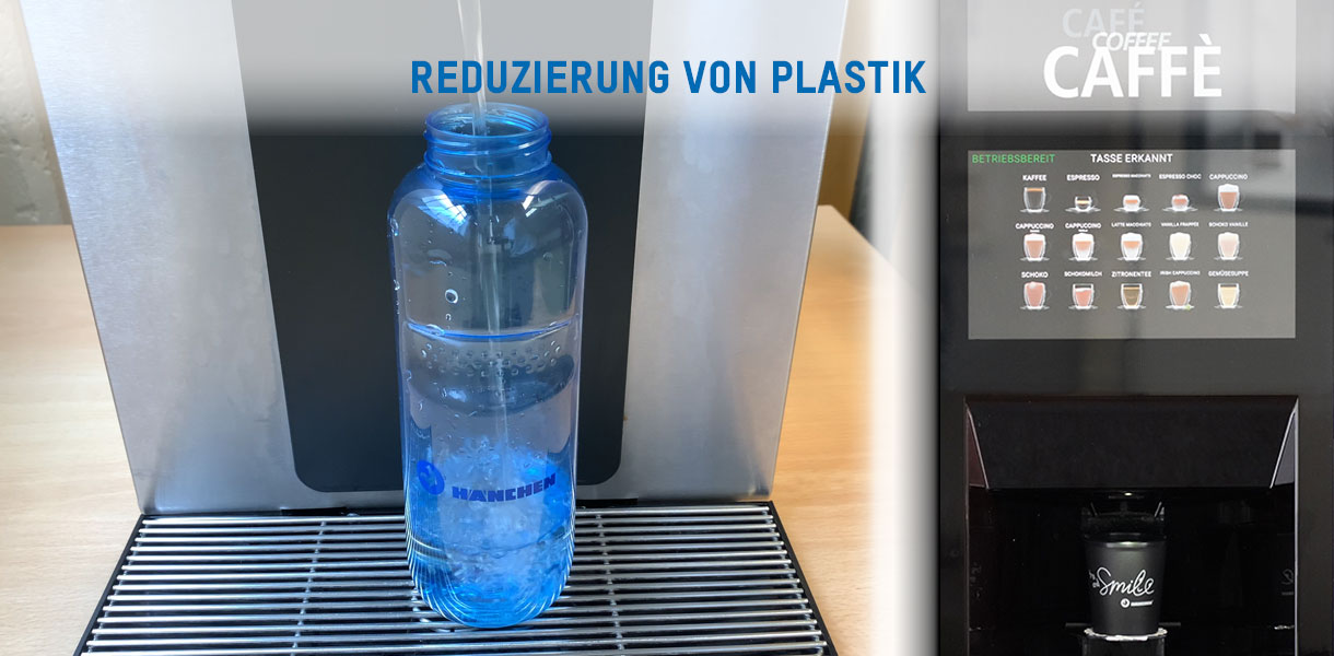 Per ridurre il consumo di bottiglie in PET, mettiamo a disposizione distributori d'acqua con bottiglie riutilizzabili. Inoltre, nella produzione siamo passati a bicchieri riutilizzabili per i nostri distributori di caffè, al fine di preservare le risorse plastiche.