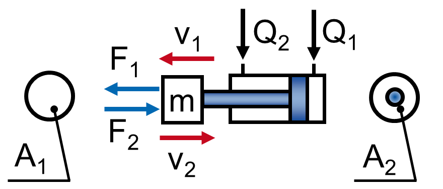 | Formule per il calcolo dei cilindri idraulici | Cilindro differenziale A2 < A1 |