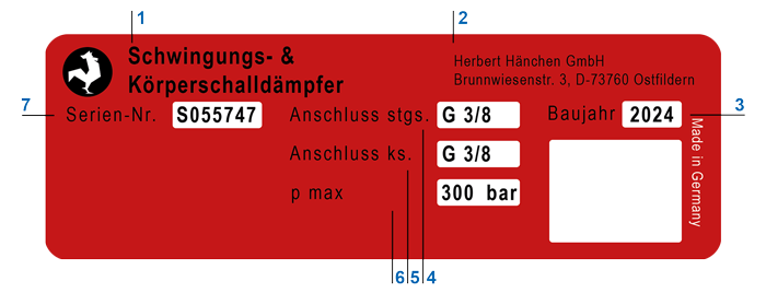 Esempio targhetta di identificazione ammortizzatore di oscillazioni e silenziatore per rumori strutturali